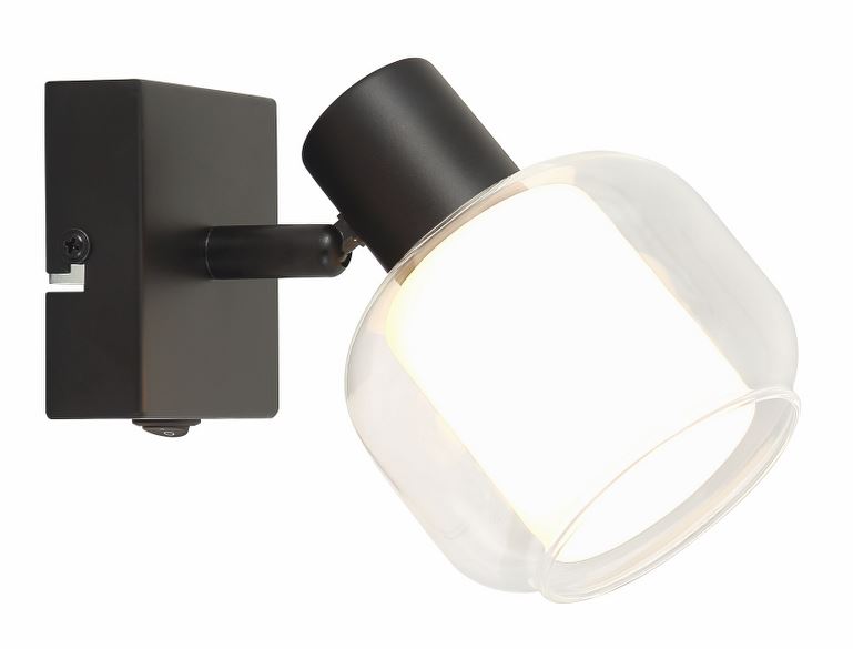 Spot svjetiljka CHARLOTTE spoj je modernog minimalizma i elegantne funkcionalnosti. Njezino dvostruko stakleno sjenilo sastoji se od vanjskog prozirnog stakla i unutarnjeg bijelog sjenila, koje osigurava meko i ravnomjerno raspršeno svjetlo, stvarajući ugodnu atmosferu u prostoru. Crna metalna baza dodaje sofisticiran kontrast i stabilnost. Opremljena E14 grlom, podržava žarulje do 8W, pružajući učinkovito i estetski ugodno osvjetljenje. Zahvaljujući integriranom prekidaču, jednostavna je za korištenje, što je čini savršenim rješenjem za spavaće sobe, hodnike, radne prostore i čitalačke kutke.