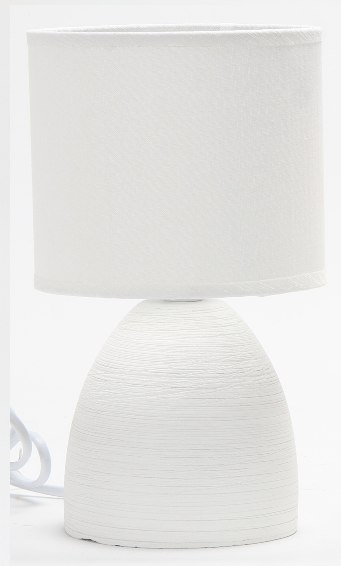 Bijela keramička stolna lampa.