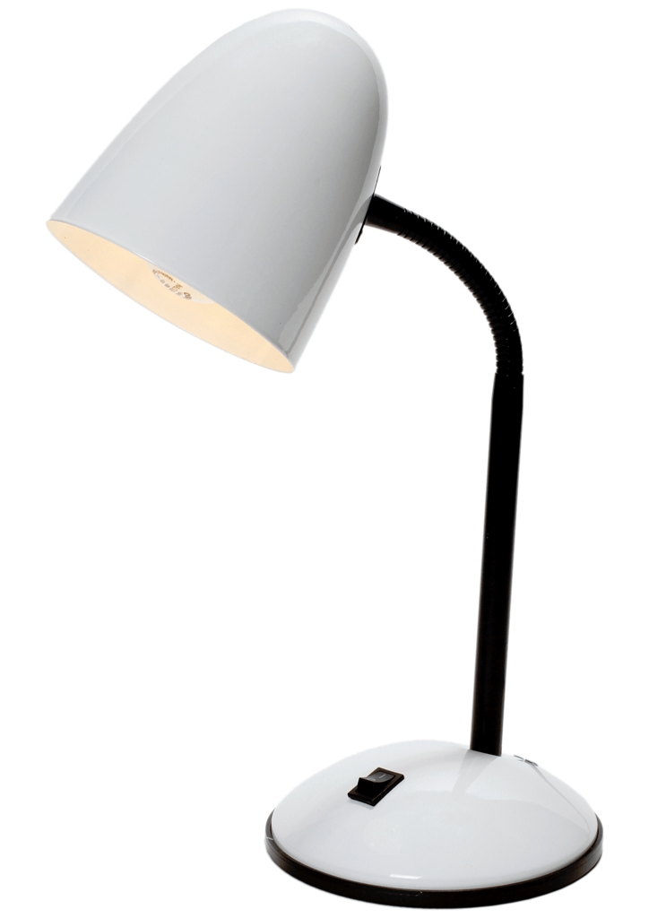 bijela metalna stolna lampa s prekidačem na bazi