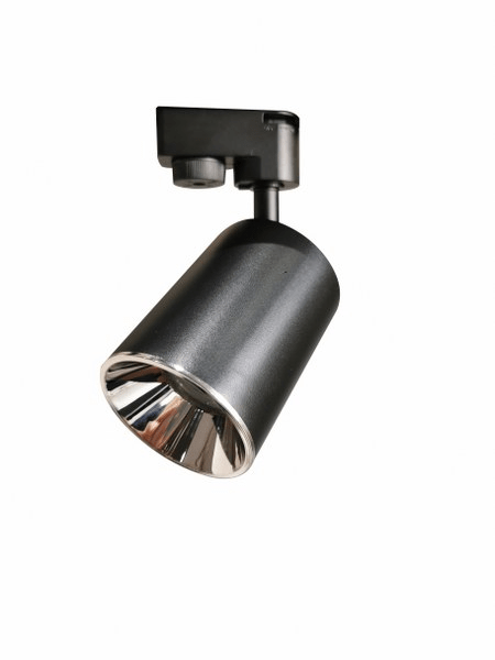 Crna mat stropna tračna svjetiljka od aluminija s prstenom od crnog sjajnog kroma. LED GU10 žarulja MAX 9W (žarulja nije uključena).
