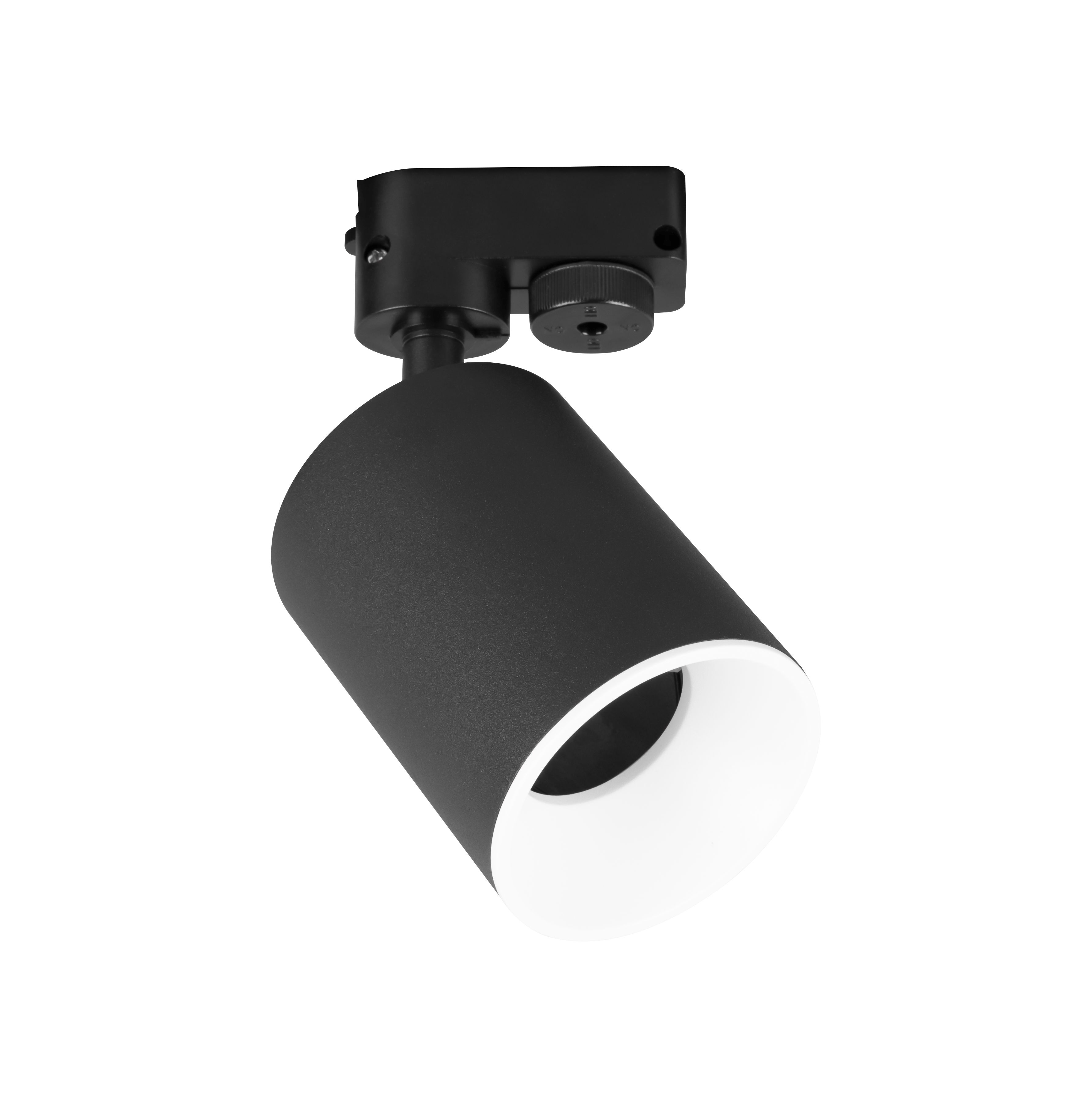 Crna mat stropna tračna svjetiljka od aluminija s prstenom u bijeloj mat boji. LED GU10 žarulja MAX 9W (žarulja nije uključena).
