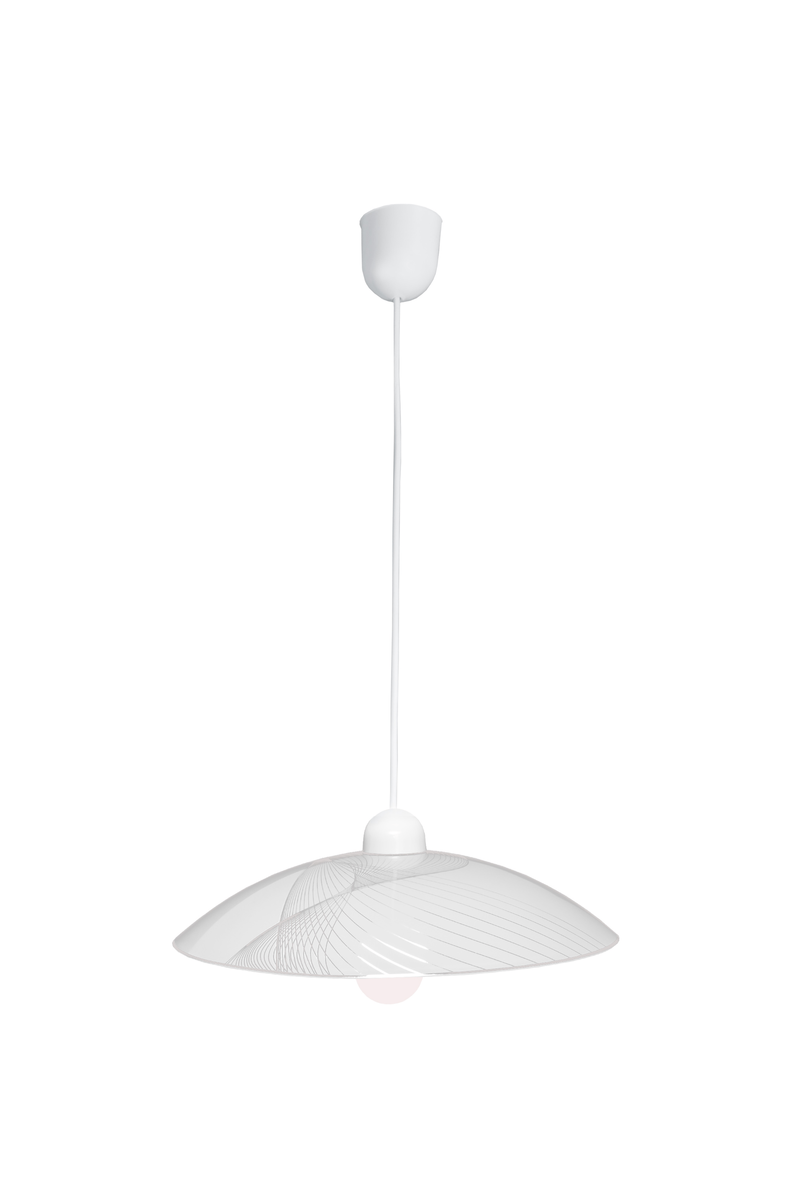 Staklena visilica s uzorkom i plastičnim bijelim ovjesom.