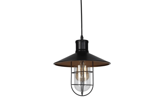 Metalna visilica u crnoj boji sa staklenim prozirnim pokrovom.
