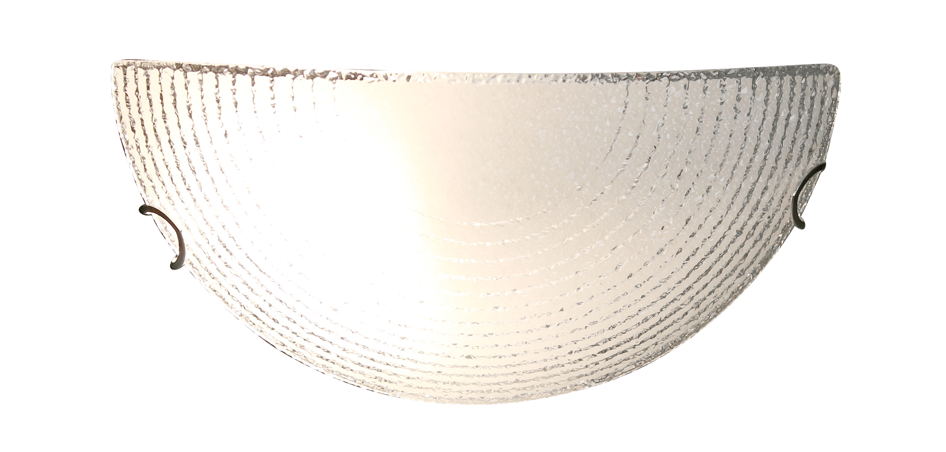 Zidna staklena plafonjera bijele boje s uzorkom i kromiranim kukicama.