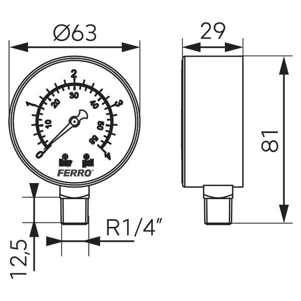 FERRO MANOMETAR 1/4″” 0-4 bar, fi-63, radijalKnOi M