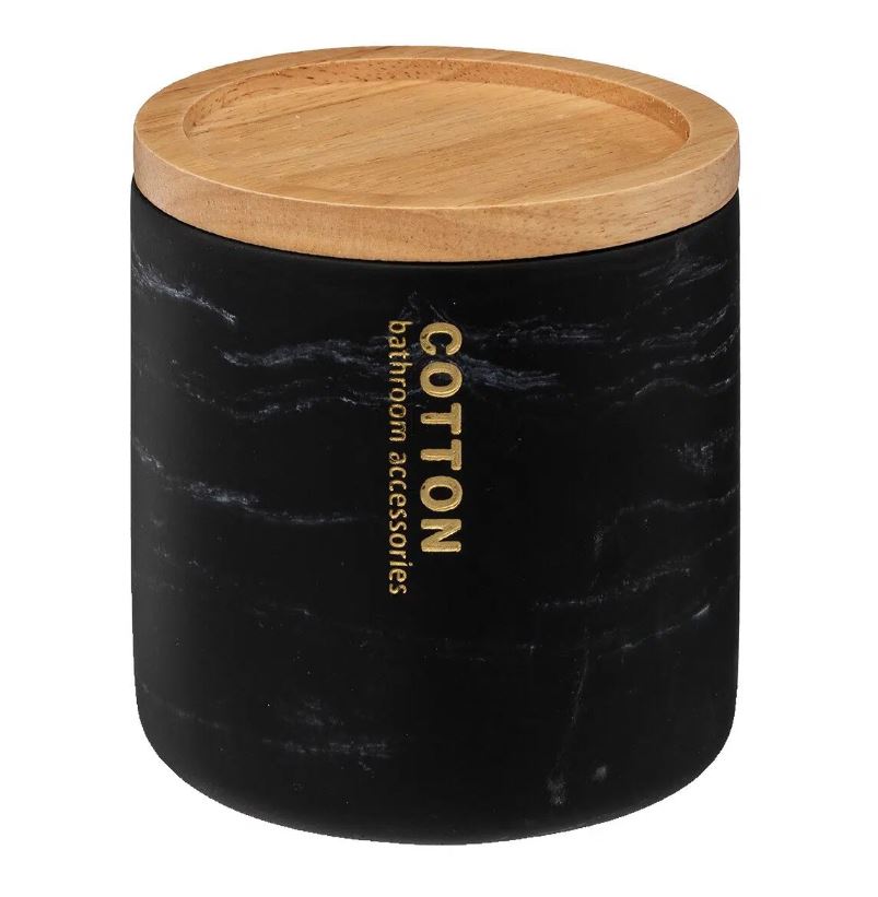 Doživite savršenu mješavinu elegancije i praktičnosti sa spremnikom za blazinice Lea. Elegantno i praktično rješenje za pohranjivanje i organiziranje osnovnih higijenskih potrepština. Crna boja s efektom mramora podiže estetski izgled svake kupaonice. Izrađen od kvalitetnog poliresina sa drvenim poklopcem. Dimenzija: 9,5x11cm.
