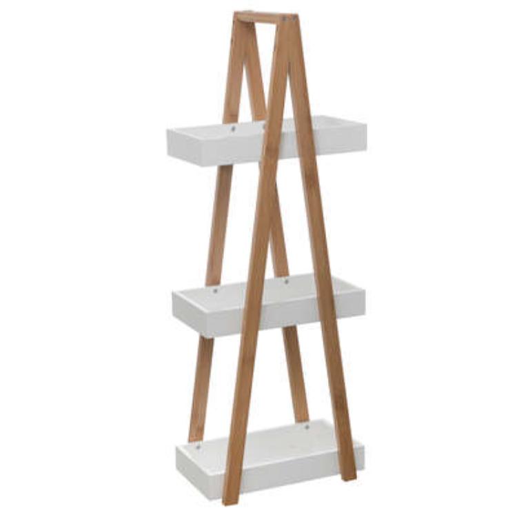 Pospremite i organizirajte sve svoje sitne potrepštine pomoću ovog stalka s tri police Natureo. Stalak je smeđe boje s bijelim policama. Izrađen od kvalitetnog MDF materijala. Dimenzija: 30x18x82 cm.