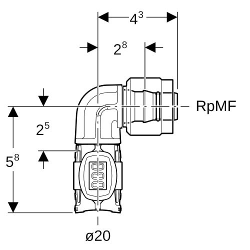 Početna Instalacije vodovod i grijanje Instalacije Geberit FlowFit FlowFit koljeno GEBERIT FLOWFIT PRIKLJUČNO KOLJENO 20X1/2″” S ELEMENTOM MASTERFIX: PPSU, 620.491.00.1