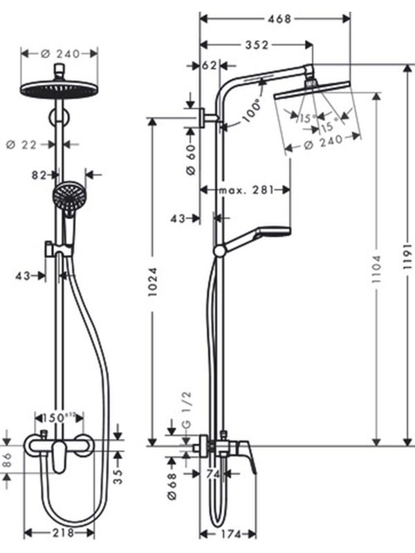 • duljina nosača nadglavnog tuša: 350 mm