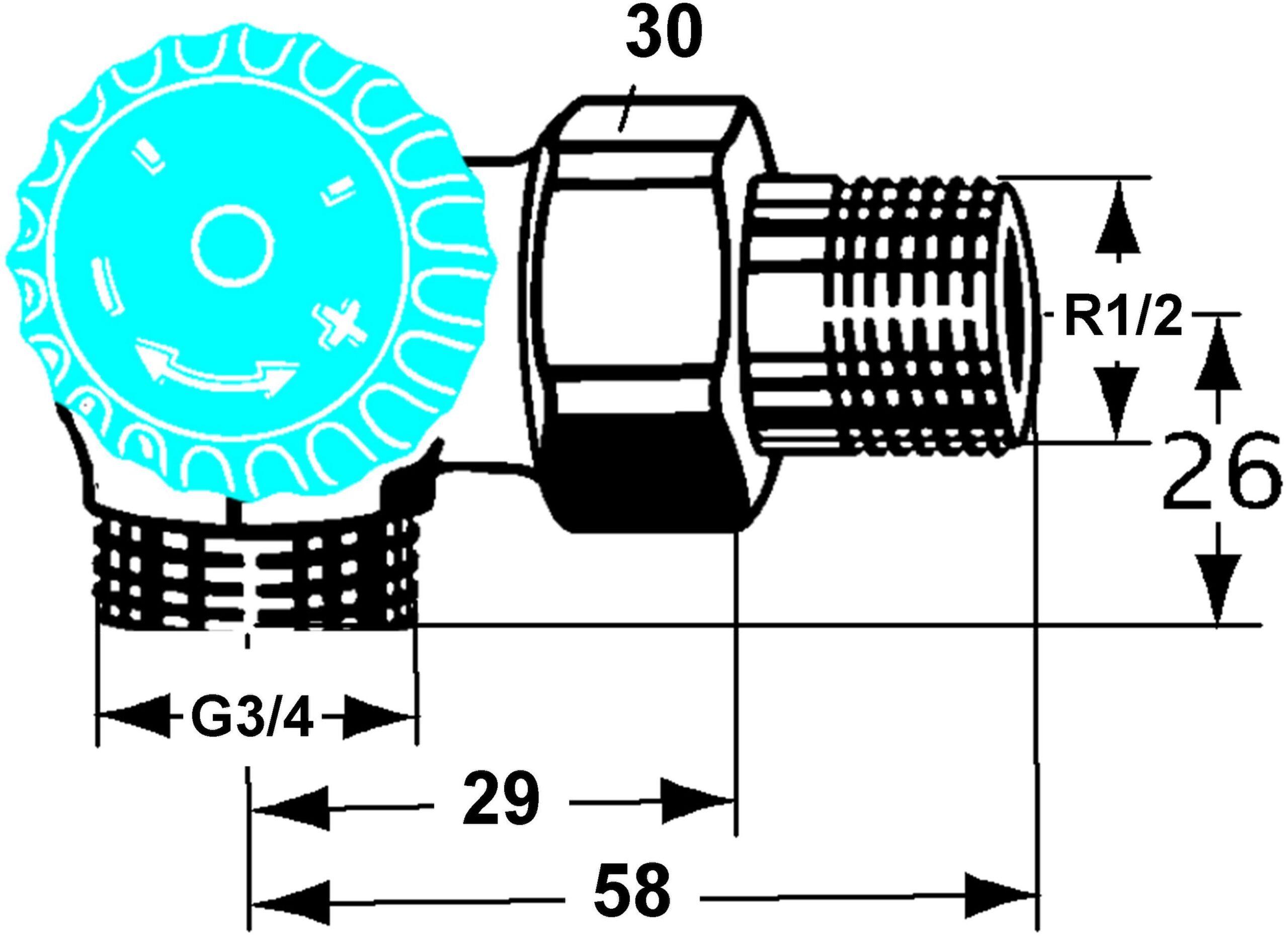 HEIMEIER VENTIL TERM. 1/2″ LIJEVI (vanjski navoj 3/4) WET 15 2313-02.000