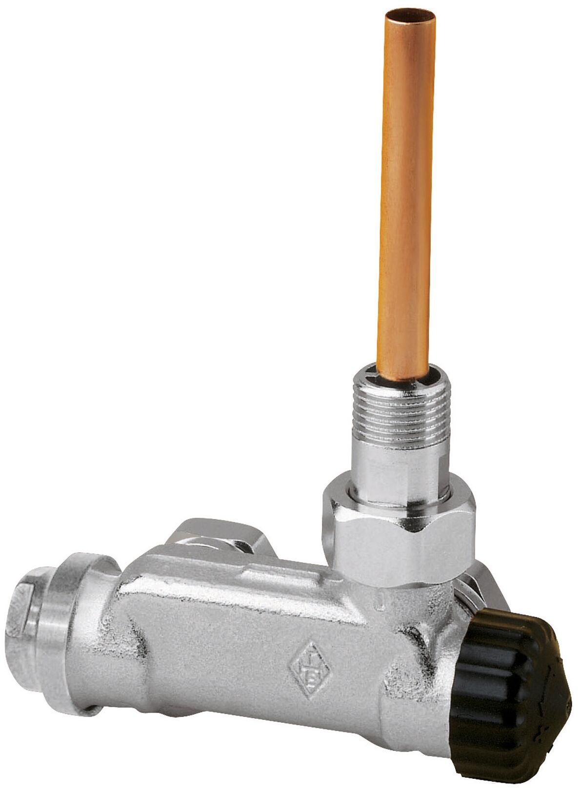 EZ valve made of corrosion-resistant gunmetal nickel-plated with immersion tube for Radiators with lower single-point connection
