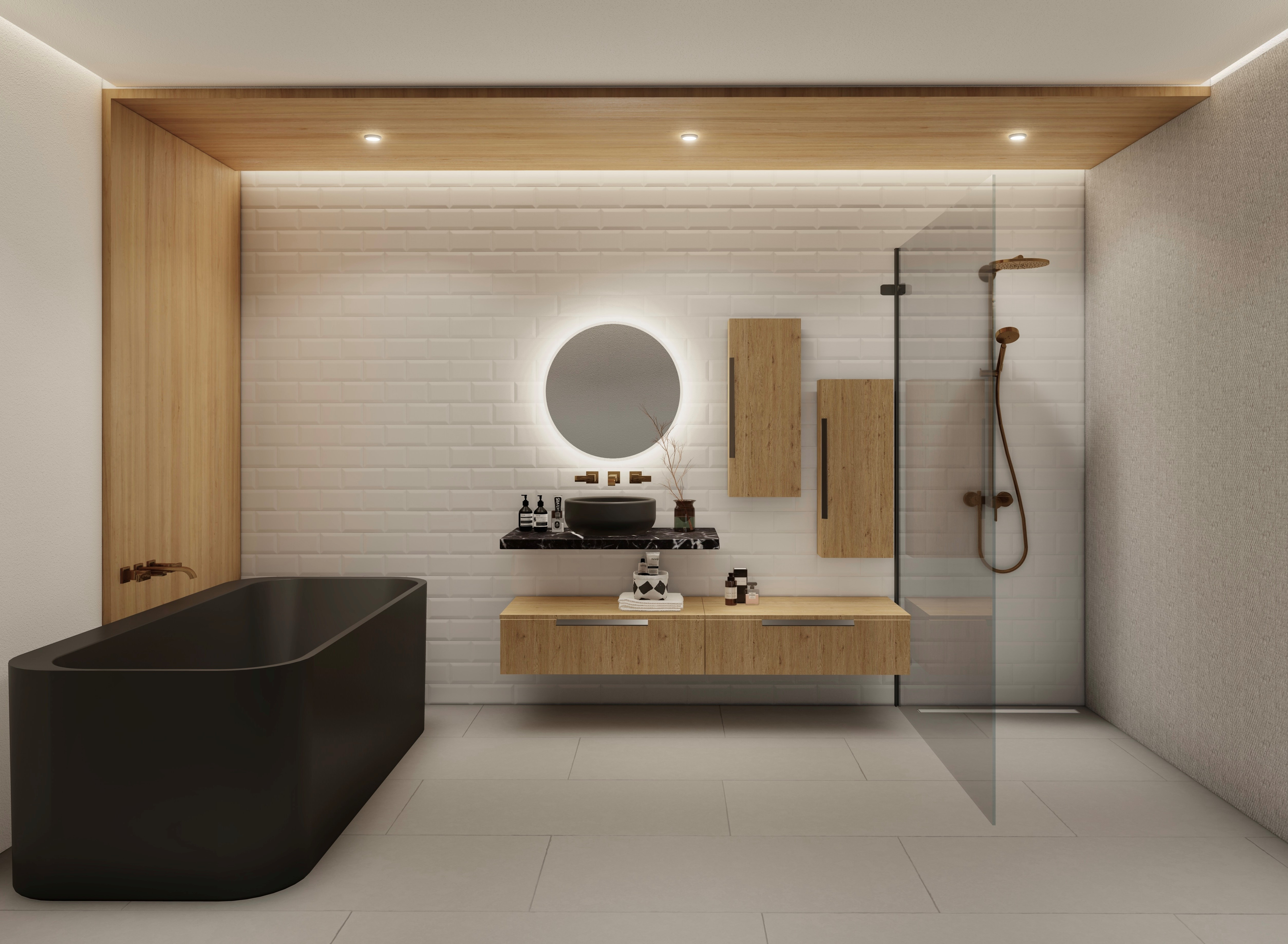 Ploča za nadgradni umivaonik u dekoru pietra grigia. Predlažemo kombinaciju s modulima iz Hip kolekcije za više mjesta za odlaganje.