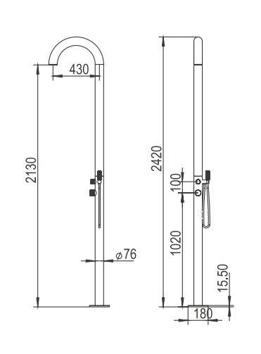 IDEALAQUA VANJSKI TUŠ FI76 ML9020 SA CRIJEVOM I SLUŠALICOM INOX (SS316L)