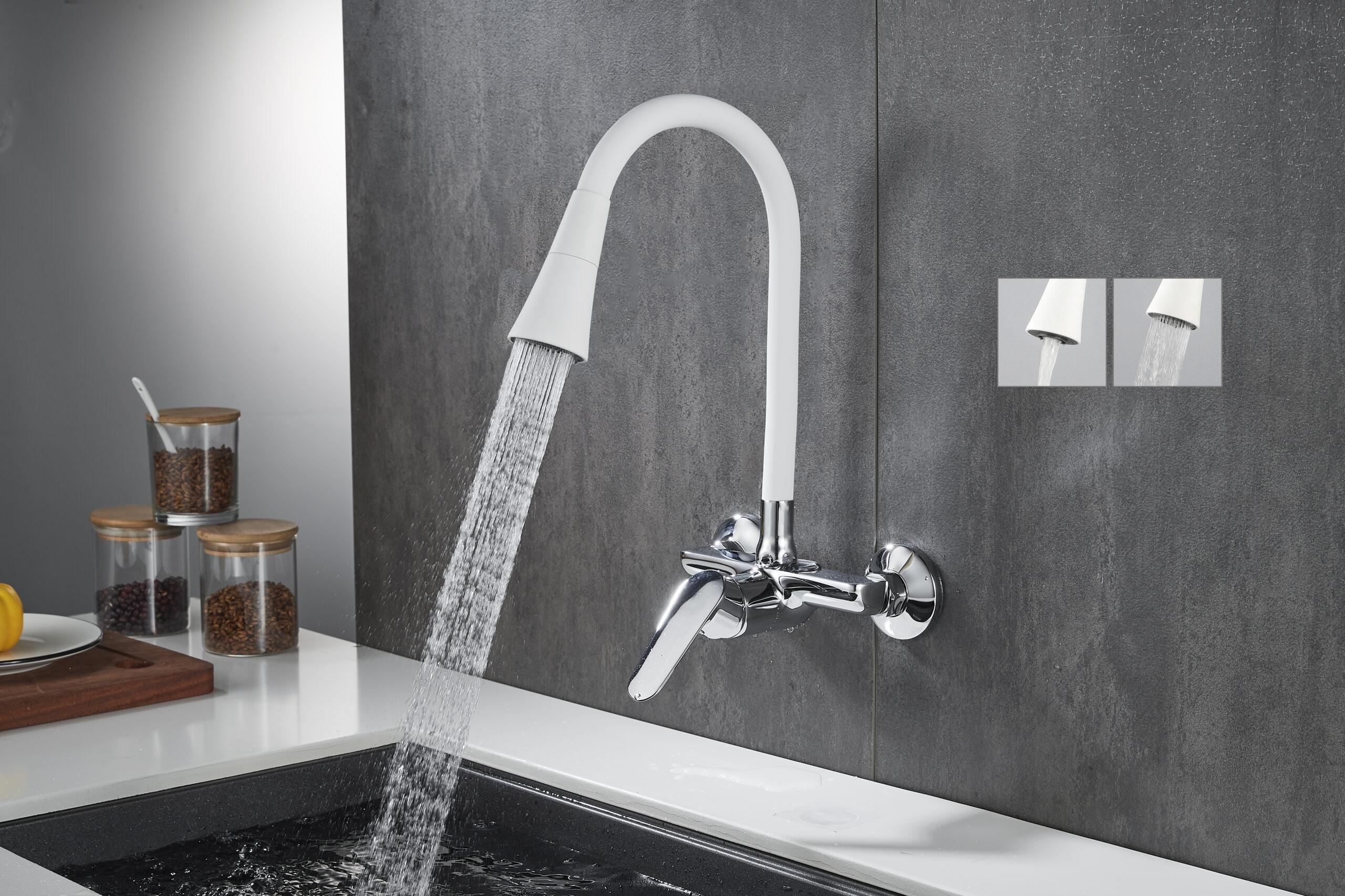 Zidna slavina za sudoper izrađena od visokokvalitetne mjedi u mat bijeloj boji donosi moderan i sofisticiran izgled u svaku kuhinju. Fleksibilno crijevo omogućava izuzetnu praktičnost i slobodu pokreta prilikom pranja posuđa, omogućujući lako dosezanje svih kutaka sudopera. Elegantan dizajn mat bijele površine savršeno se uklapa u suvremene kuhinje, dodajući dozu luksuza i modernog stila. Ova slavina kombinira funkcionalnost i estetiku, pružajući dugotrajnu izdržljivost zahvaljujući kvalitetnom materijalu od mjedi koji je otporan na koroziju i habanje.