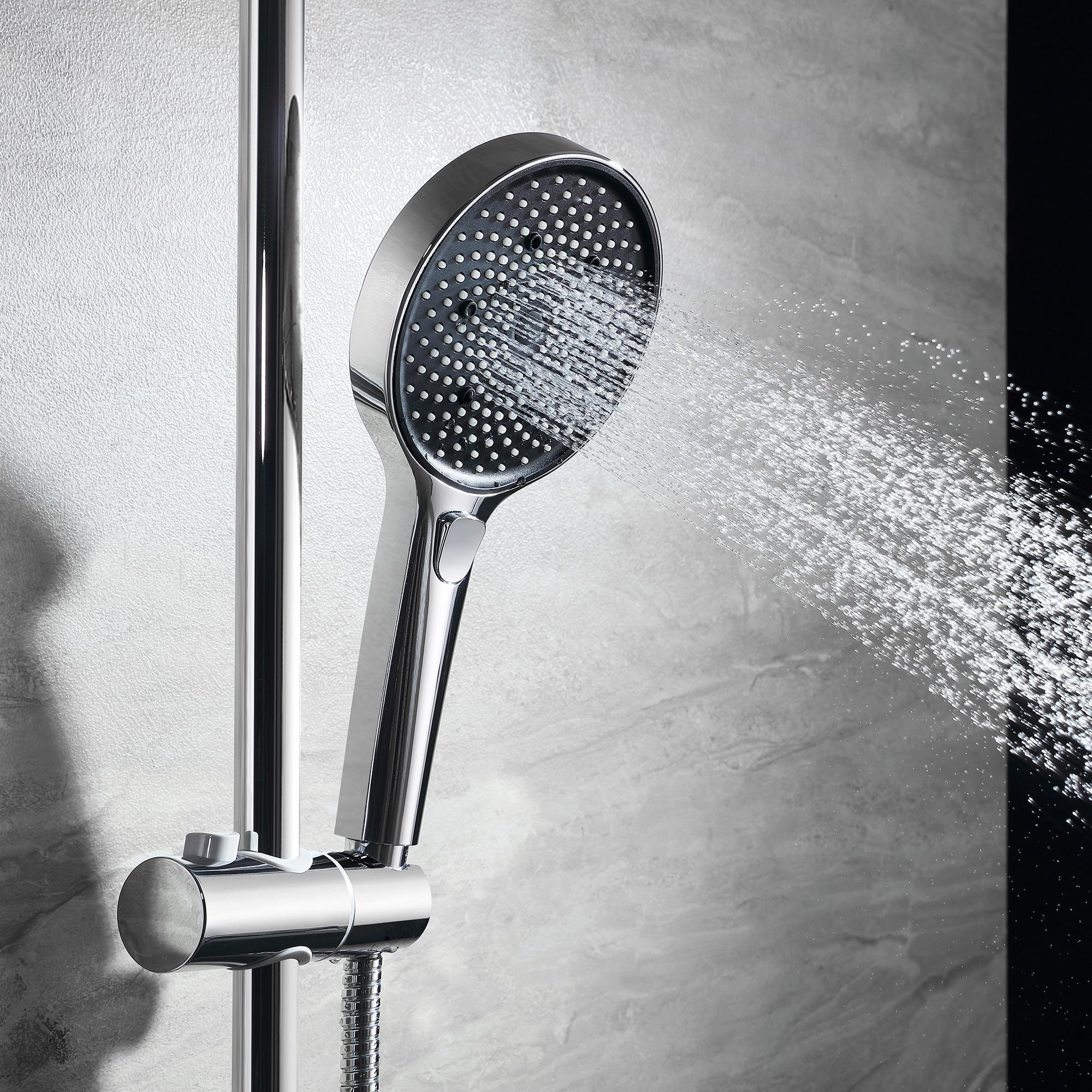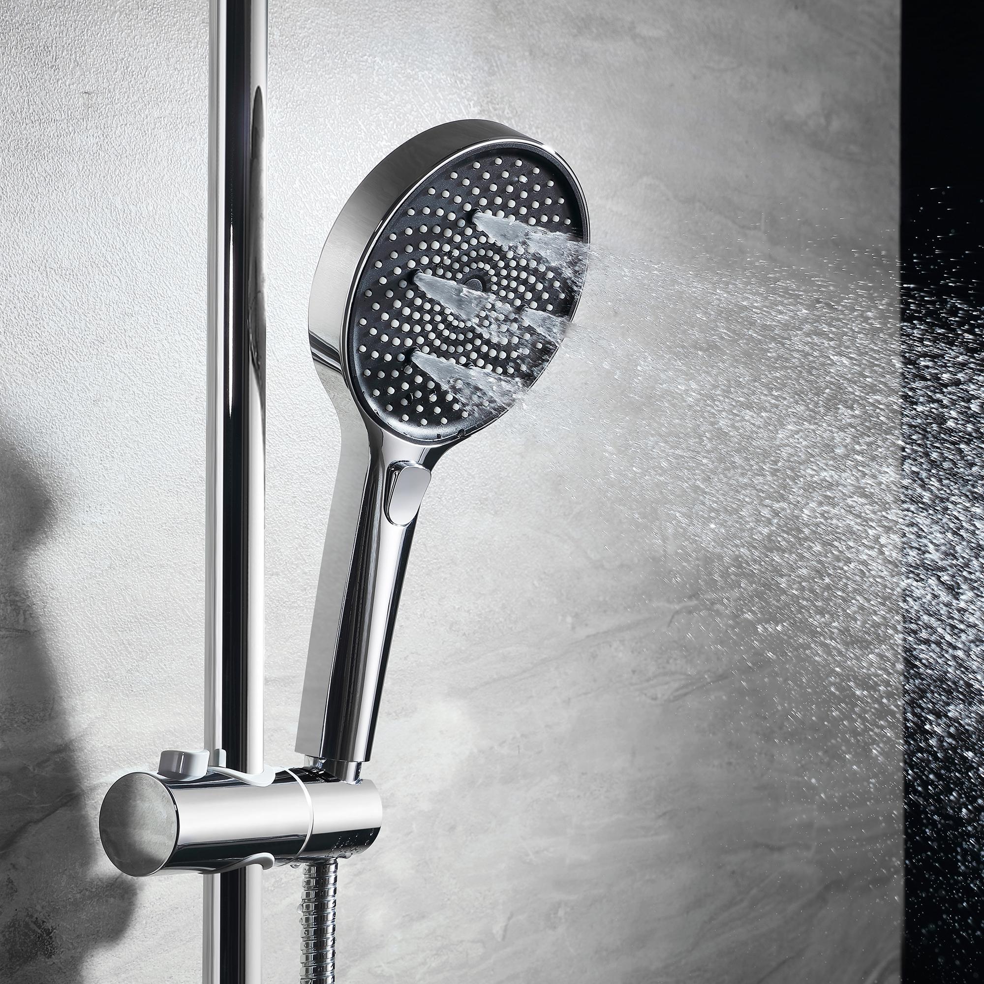 Tuš ručica s tri funkcije donosi vrhunsko iskustvo tuširanja prilagođeno vašim potrebama. S promjerom od 12 cm, ova ručica pruža širok mlaz vode koji omogućava opuštajuće i osvježavajuće tuširanje. Izrađena od ABS materijala s kromiranom i crnom završnom obradom, ne samo da je izdržljiva, već i estetski privlačna, dodajući moderni dodir svakom kupatilu. Raznolikost funkcija omogućuje vam da odaberete način rada koji najbolje odgovara vašem raspoloženju – bilo da želite nježan mlaz za opuštanje, snažniji mlaz za brzo ispiranje ili kombinaciju oba. Dimenzije 13,1×27,1 cm omogućuju jednostavno rukovanje, dok ergonomski dizajn pruža udobnost tijekom korištenja. Ova tuš ručica ne samo da olakšava svakodnevnu njegu tijela, već i podiže kvalitetu vašeg tuširanja na višu razinu, stvarajući osjećaj luksuza u vlastitom domu.