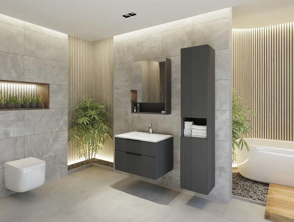 LANG BAZA VISEĆA DVIJE LADICE 85 CM S UMIVAONIKOM D16-3D FOLIJA – ANTRACIT; 85x35x52