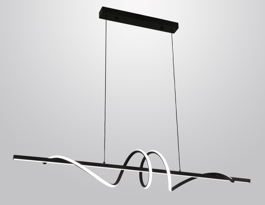 Svevremenska LED visilica Noemy s nježno oblikovanim i uvijenim LED metalnim sjenilom. Stapa se s prostorijom i isijava ugodno izravno svjetlo preko blagovaonskog stola ili kuhinjskog otoka.