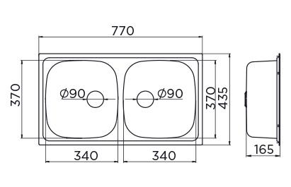 Unutarnje dimenzije sudopera 340×370 mm