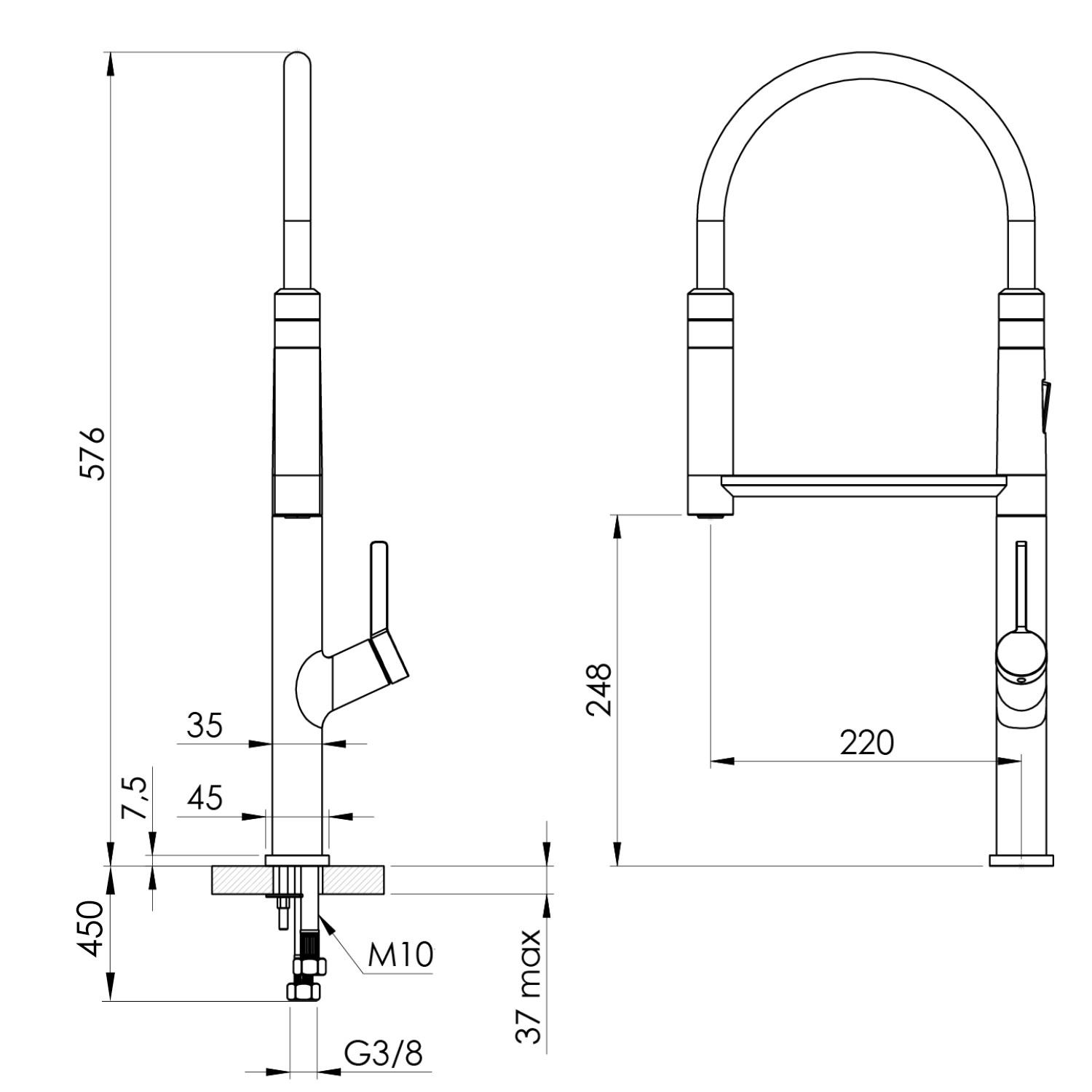 • Priključna crijeva: 2×3/8″, duljine 45 cm
