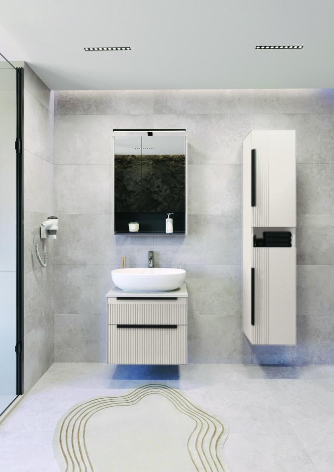 Miriad kupaonski ormarić s top pločom donosi dozu urbanog mira u vašu kupaonicu. Dvije prostrane ladice osiguravaju dovoljno mjesta za sve potrepštine, dok mat crna ručka dodaje prostoru diskretan karakter. Top ploča elegantno nadopunjuje dizajn i pruža savršenu podlogu za nadgradni umivaonik, istovremeno nudeći praktičnu površinu za svakodnevnu upotrebu. Čiste linije i jednostavan oblik lako se uklapaju u različite stilove uređenja, pa prostor ostaje uredan, organiziran i ugodan za boravak.