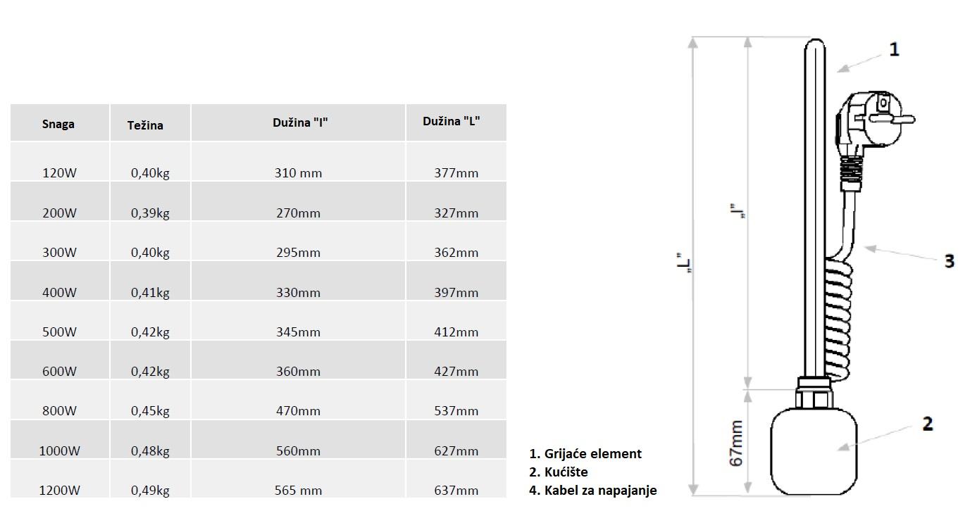 START-STOP tajmer – grijaći element održava zadanu temperaturu 1h, 2h, 3h, 4h, nakon čega se električni grijaći elementi isključuju