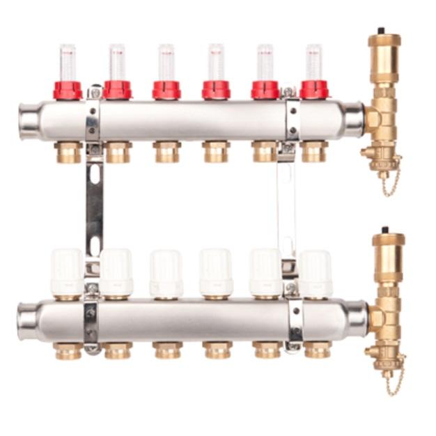 Razdjelnik Valvex INOX K5 – 3 krugova, s ventilima, topmetrima i sigurnosnim setom (podno grijanje)