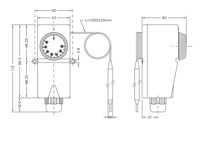 Termostat uronski TUREC NeoTHERM/Cewal s kapilarom, 30 – 90°C (L=1000mm)