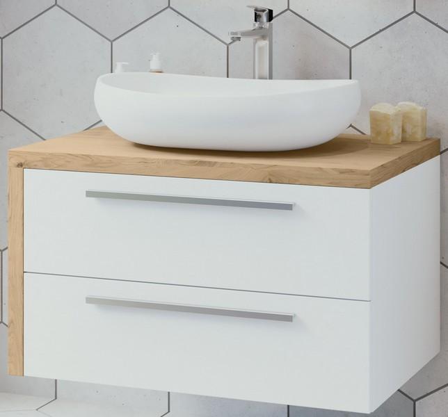 LOA BAZA VISEĆEG ELEMENTA Š84 LIJEVA – PLOČA HRAST ZLATNI bijela mat; dvije ladice; ručkice; 84×53,5×48 cm