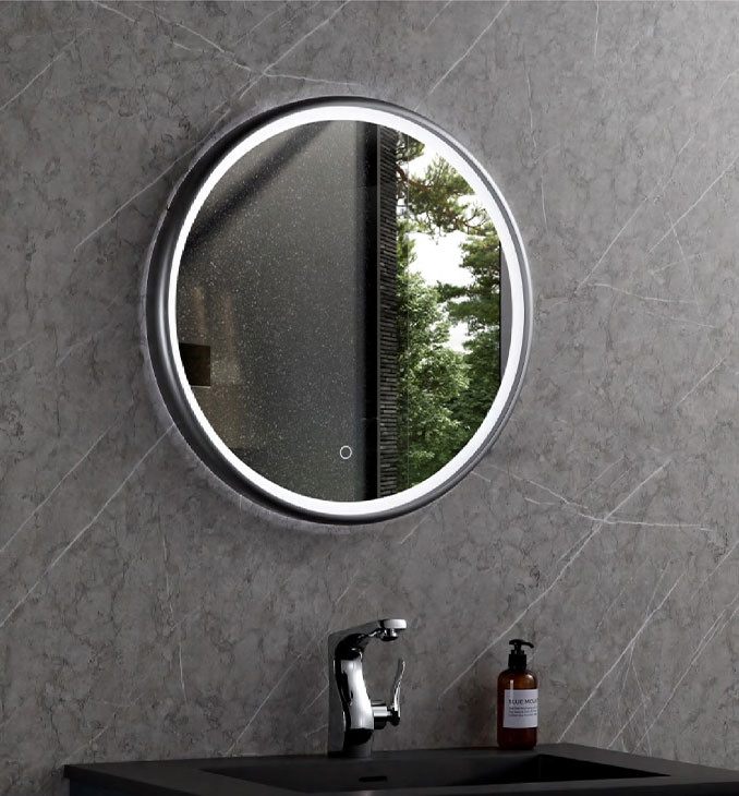 Okvir od mat crnog aluminija debljine 20 mm daje ogledalu čvrstoću i sofisticiran izgled, dok LED rasvjeta tipa 2835-60+60 (0,1 W) osigurava ravnomjerno i učinkovito osvjetljenje, idealno za šminkanje, brijanje ili druge higijenske potrebe. Zahvaljujući naprednoj tehnologiji, korisnik može podesiti temperaturu boje u rasponu od 2700K (toplo bijela) do 6500K (hladno bijela), prilagođavajući ambijent vlastitim željama i potrebama.
