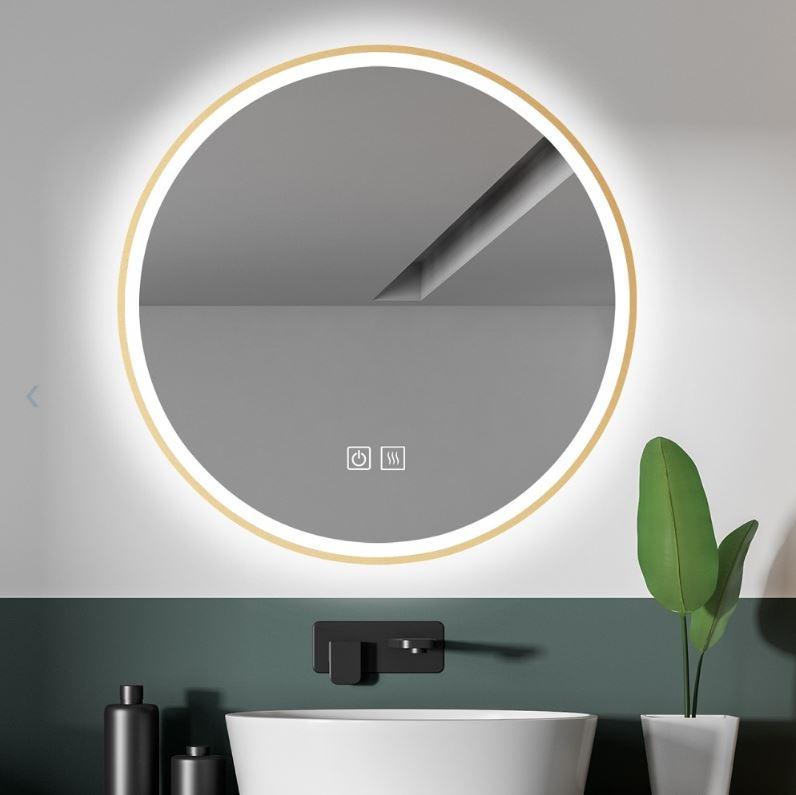 OGLEDALO S LED RASVJETOM, ZLATNI OKVIR