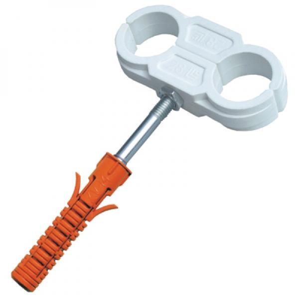 Područje uporabe: Za instalaciju bakrenih, metalnih i plastičnih cijevi. Sastoji se od dvije jednake polovine. U jednu polovinu umetnuta je matica M8 u koju je već pričvršćen hangar vijak tedruga polovina. Obujmiceprema tome prije instalacije nije potrebno rastavljati.