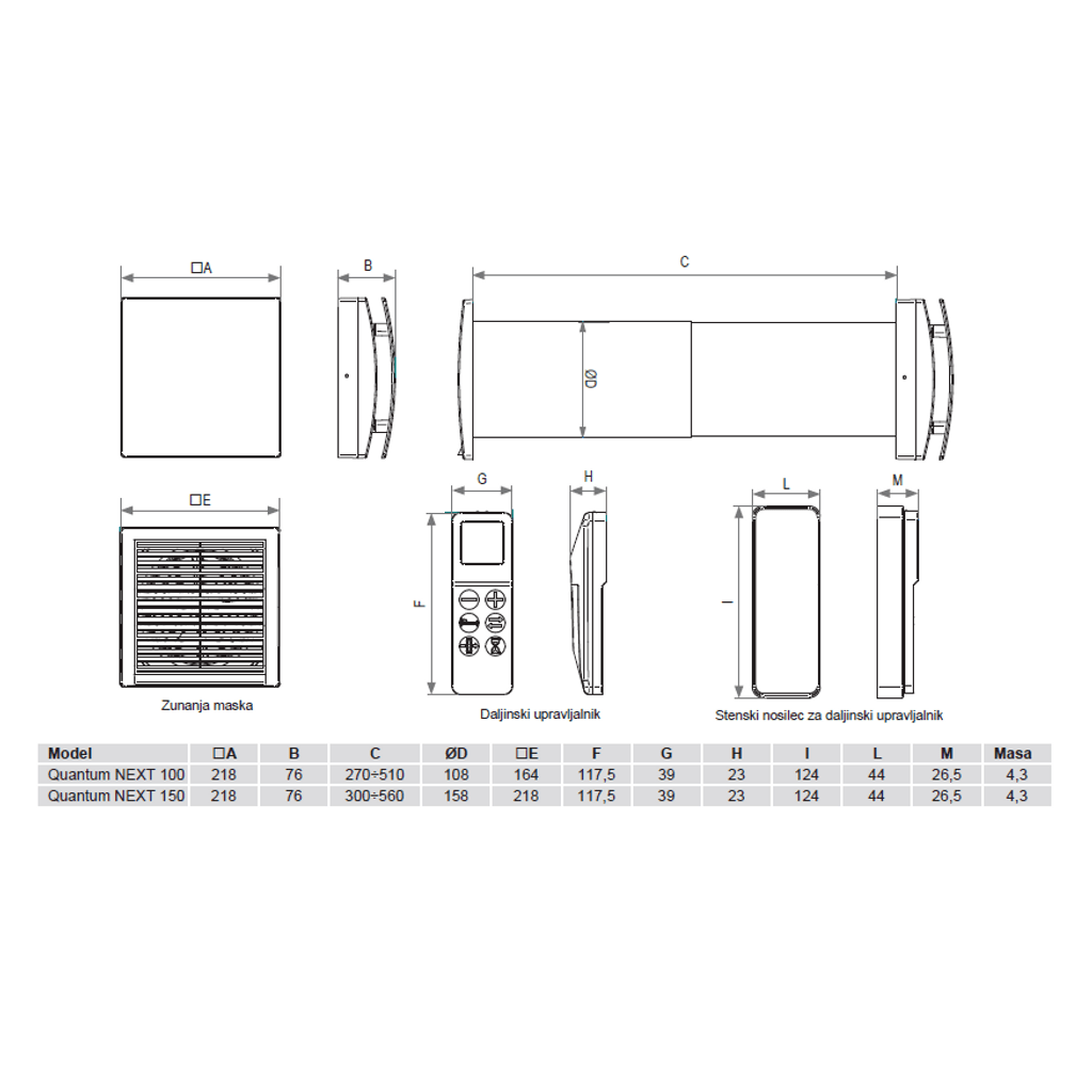 Protok zraka: 5 stupnjeva – 60/50/40/30/20 m3/h