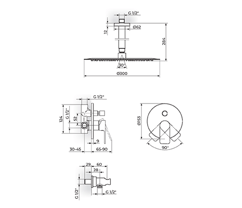 ROSAN STOLZ Podžbukna Miješalica sa stropnim tušem D.220mm i ručnim tušem