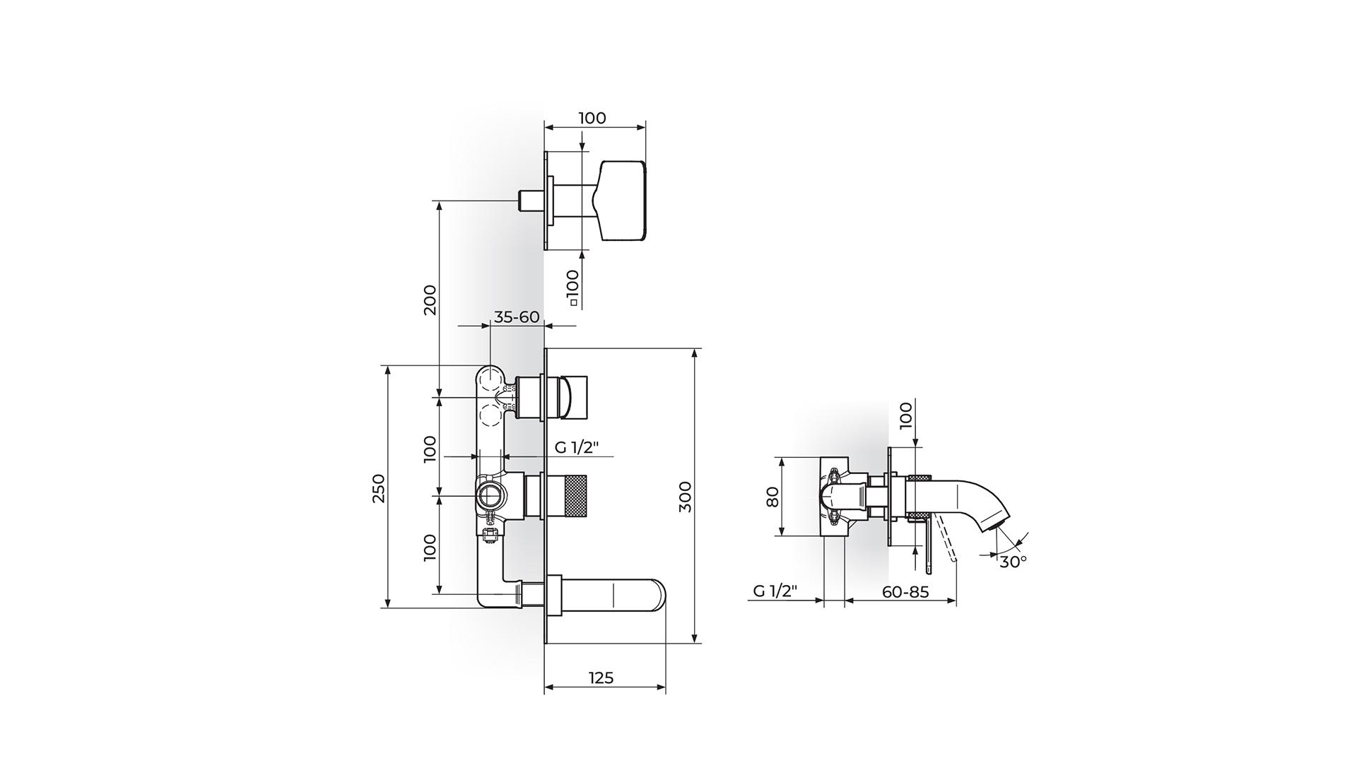 ROSAN S2 Podžbukna Miješalica za kadu sa izljevom i ručnim tušem