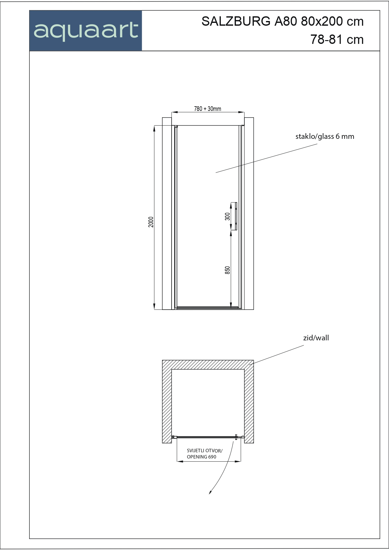 Tuš vrata Salzburg – elegantna i moderna opcija za vašu kupaonicu. Izrađena s krom aluminijskim profilima koji pružaju čvrstoću i trajnost, dok istovremeno dodaju sofisticiranu notu dizajna. S prozirnim staklom debljine 6 mm, ova tuš vrata omogućavaju prodiranje svjetlosti i stvaraju osjećaj prostranosti u vašoj kupaonici.