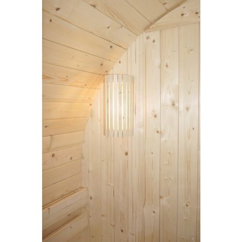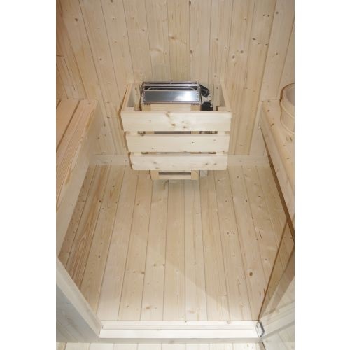 Izrađena od robusnog smrekovog drva i s debljinom zida od 3,8 cm, sauna se ističe svojom velikom stabilnošću i optimalnom toplinskom izolacijom. Dvije klupe (svaka cca. 93,5 × 47,8 cm) pružaju ugodnu udobnost, dok velika prednja strana od sigurnosnog stakla (6 mm) stvara otvoren i prijatan osjećaj prostora.