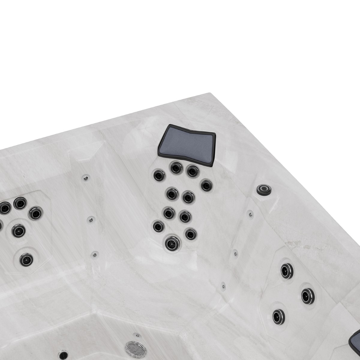 S dvostupanjskom hidrauličnom pumpom (2,2 kW) i grijačem (3 kW), whirlpool nudi intenzivne, ravnomjerne mlazove vodene masaže. Ukupno 51 mlaznica za masažu od nehrđajućeg čelika različitih veličina omogućuje ciljanu masažu od vrata do stopala, dok integrirani vodopad stvara ugodnu spa atmosferu.