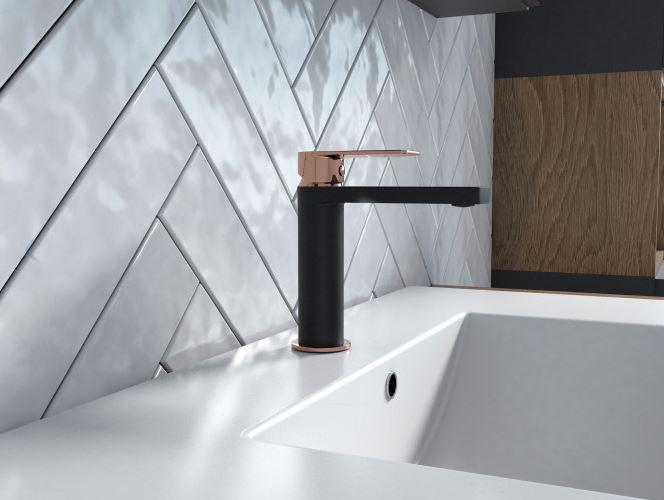 Copen Nook – mat crna / rose gold miješalica za umivaonik kombinacija je elegantanog dizajna i visokih performansi.