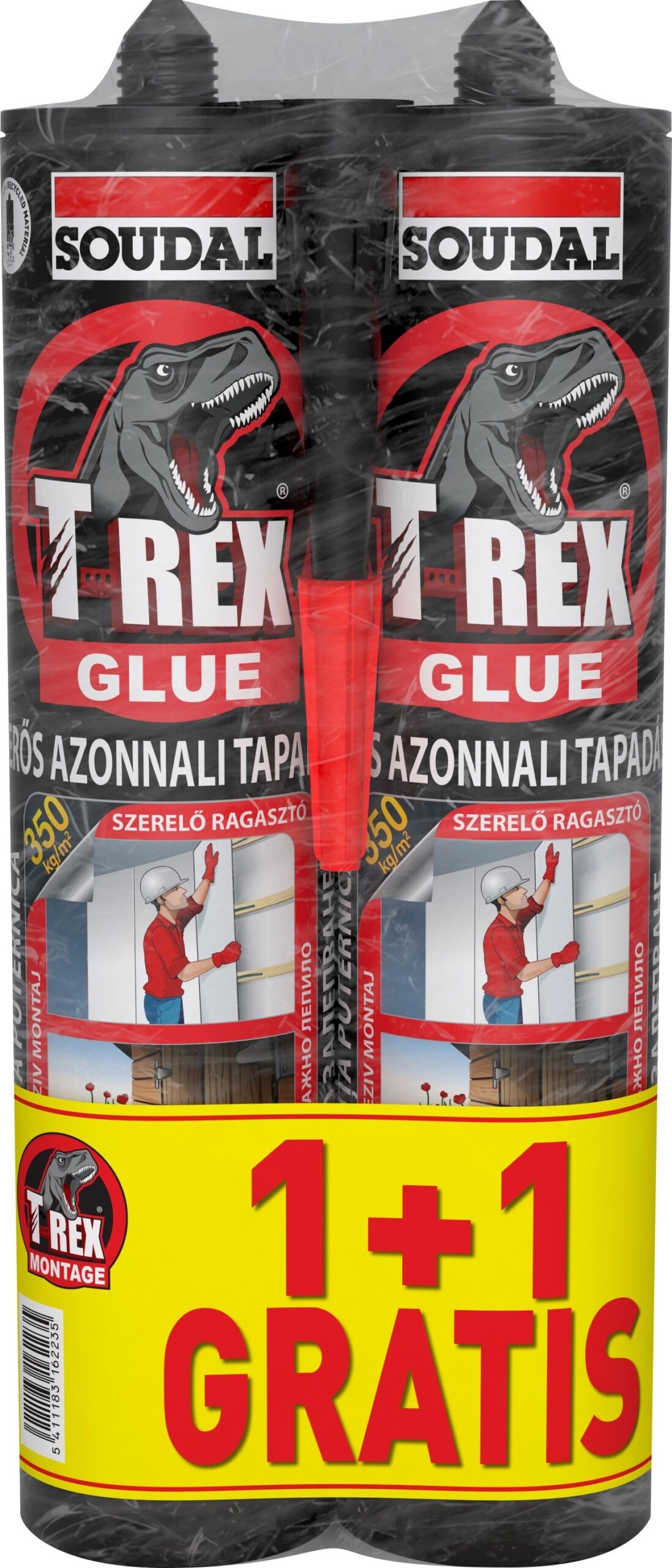 SOUDAL T-Rex trenutačno montažno ljepilo ojačano vlaknima 380gr DUO PACK 1+1GRAT