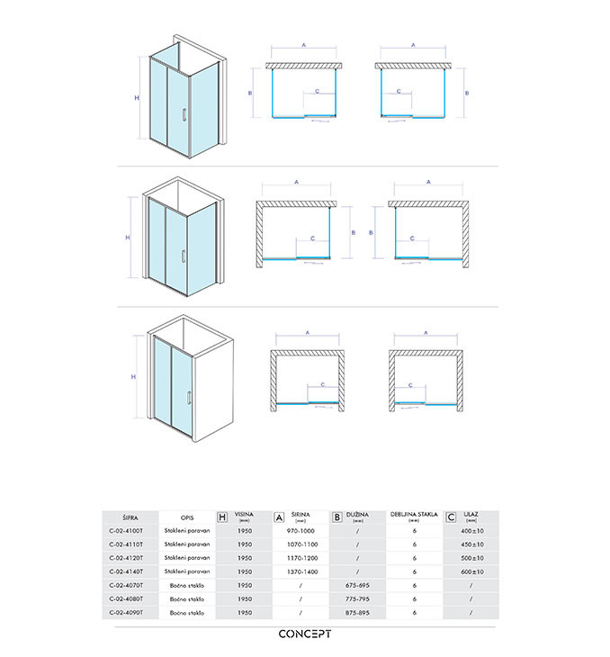 Tuš kabina COPEN ATLAS 900x900x1950 staklo 6mm prozirno