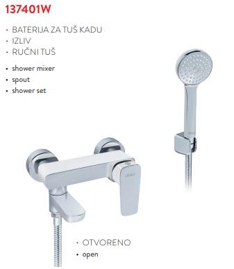 ROSAN STOLZ WHITE Miješalica za tuš kadu sa izljevom i ručnim tušem