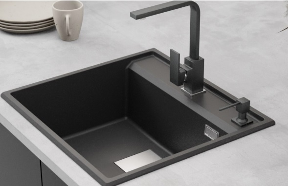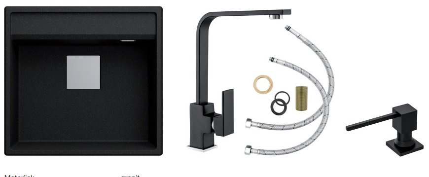 Osnovna oprema: odvodni ventil 3 1/2“, preljevnik, sa sifonom, slavina QUBE, dispenzer za deterdžent QUBE