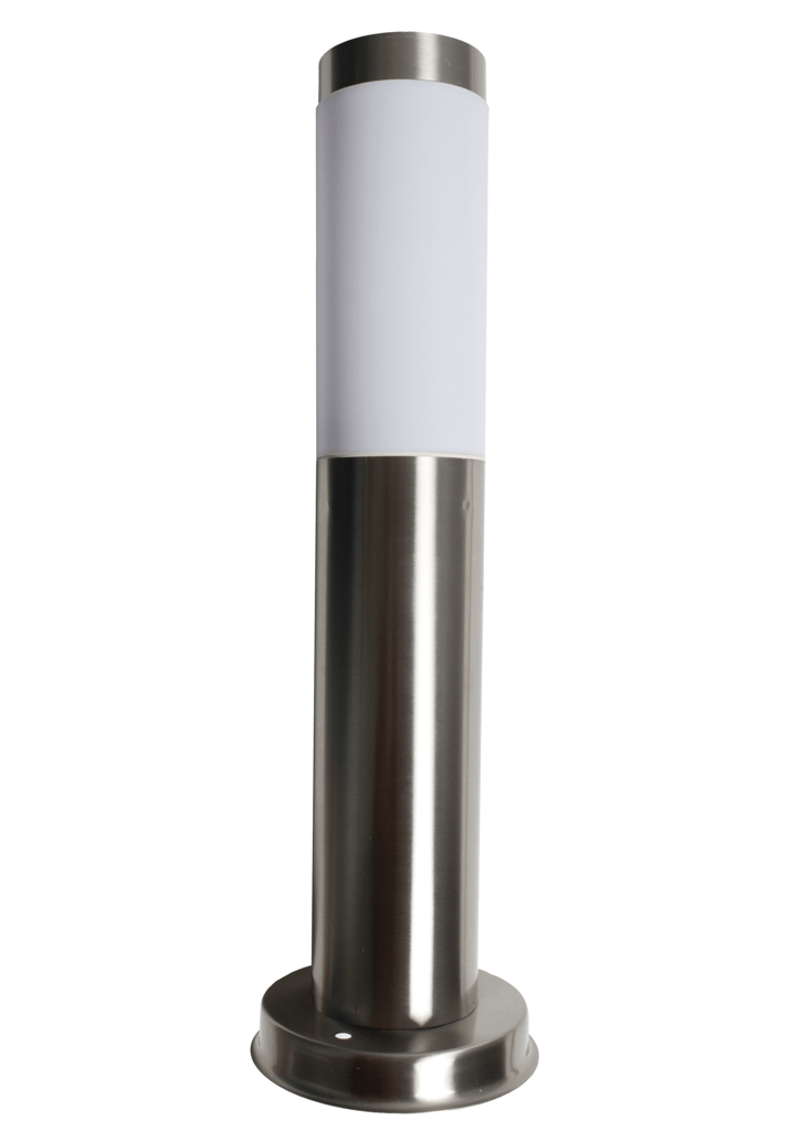 Srebrna inox vanjska podna svjetiljka i opal plastični difuzer.