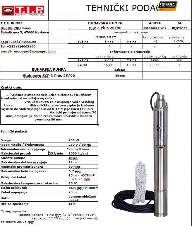 T.I.P. BUNARSKA VIJČANA PUMPA SCP 3 Plus 25/90 S 750w 90m/9b 1500l/h 12m