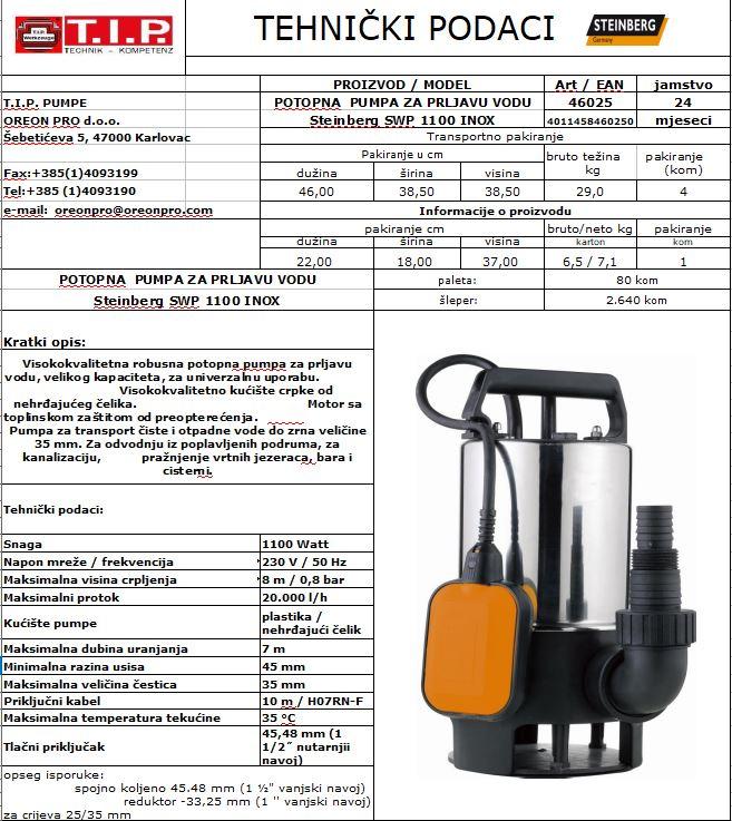 Visokokvalitetna robusna potopna pumpa za prljavu vodu, velikog kapaciteta, za univerzalnu uporabu. Visokokvalitetno kućište crpke od nehrđajućeg čelika. Motor sa toplinskom zaštitom od preopterećenja. Pumpa za transport čiste i otpadne vode do zrna veličine 35 mm. Za odvodnju iz poplavljenih podruma, za kanalizaciju, pražnjenje vrtnih jezeraca, bara i cisterni.