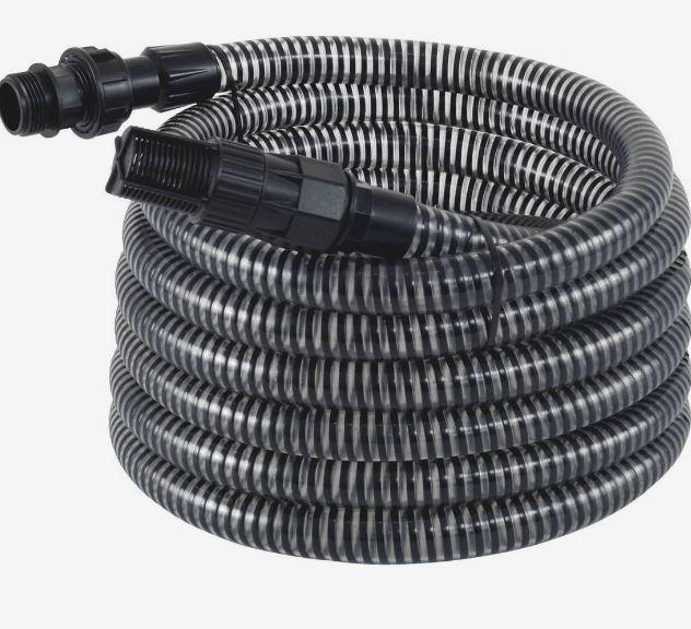 Set usisnih crijeva izrađen od plastike s tvrdom PVC spiralom i duljine 7 m opremljen je nožnim ventilom s usisnim cjedilom za grubo filtriranje i navojnim priključcima AG 33,25 mm (1 “) i IG 30,93 mm (1”). Posebno dizajniran za upotrebu s vrtnim pumpama početne razine.