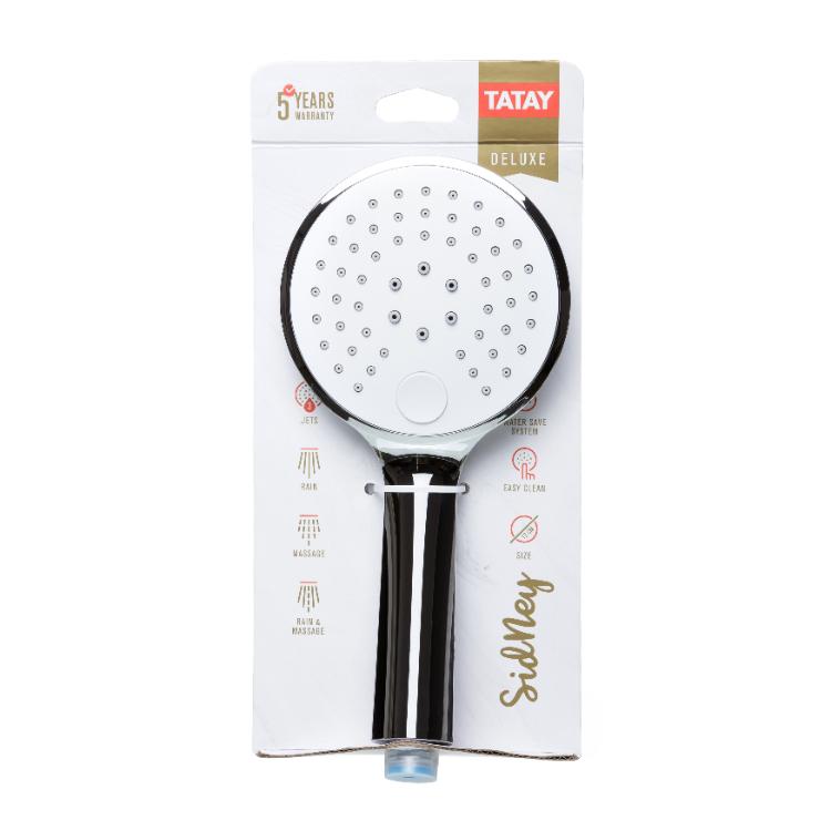 Tuš palica vrhunske kvalitete s 3 položaja mlaznica. Izrađena od kvalitetnog ABS-a s kromiranom završnom obradom. Opremljena sustavom protiv kamenca i za uštedu vode zbog čega smanjuje potrošnju vode za 50%. Promjer glave je 12 cm.