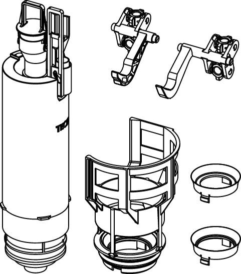 Za TECE vodokotliće ugradbene dubine 13 cm (ne za Uni 750), uključujući dosjed ventila, set prigušnica i aktivacijske šipke.