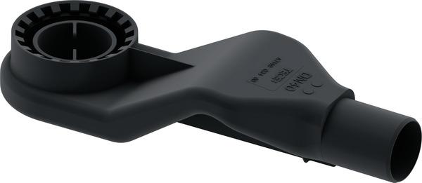 Vrlo plitak odvod za TECEdrainline tuš kanalicu za zakretnu montažu na tijelo tuš kanalice, za bočni priključak na DN 40 odvod kanalizacije, sa skidivom sifonskom cijevi za uranjanje.
