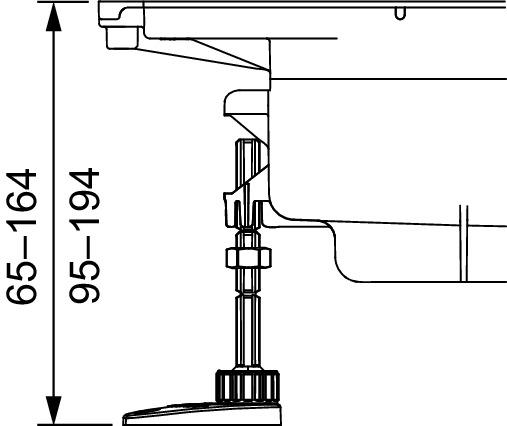 Montažne nogice za TECEdrainprofile odvod „norm” i odvod „plitki”, za jednostavno podešavanje visine i fiksiranje položaja tijekom grube gradnje. Raspon podešavanja za odvod „norm” 95-194 mm, za odvod „plitak” 65-164 mm (od donjeg ruba nogice do gornjeg ruba odvoda odn. gornjeg ruba glazure).